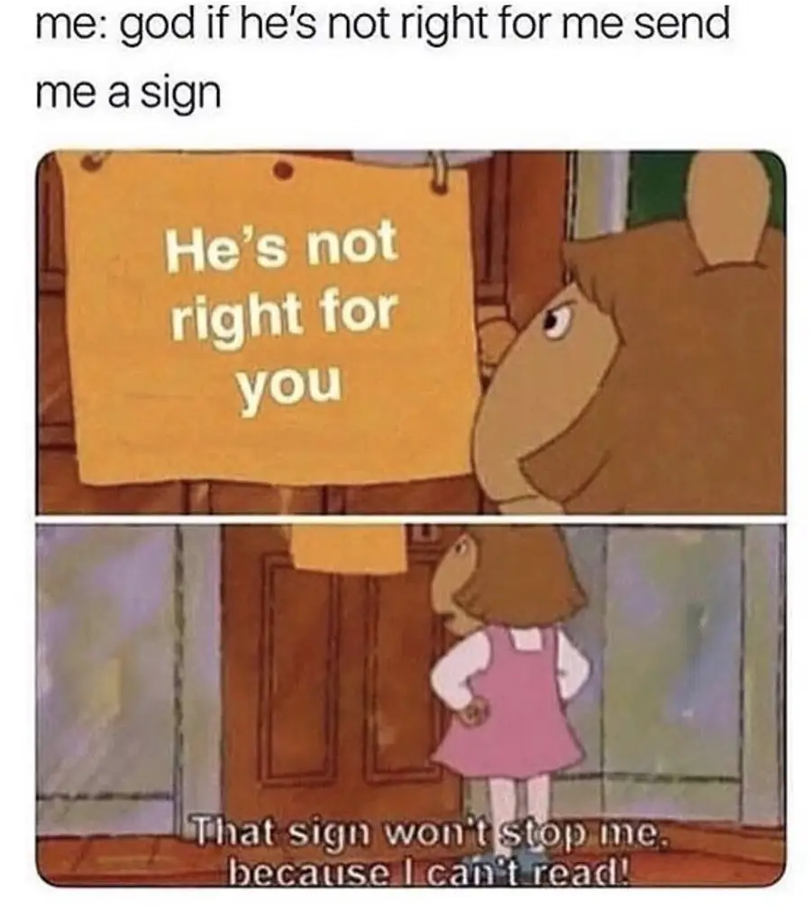 The memes didn't stop with the fist. The repertoire also includes classics such as DW standing at the fence with shades, Arthur wearing headphones on his cheeks, DW with bags under her eyes, and "That sign can't stop me because I can't read."